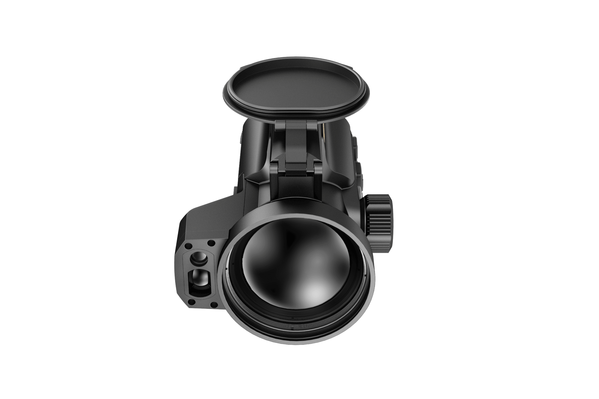 Die Frontlinse mit einer Brennweite von 60 mm ermöglicht im Zusammenspiel mit den anderen hochwertigen Komponenten eine Detektionsreichweite von überragenden 3.100 m und einem riesigen Sehfeld von 25,6 m auf 100 m.